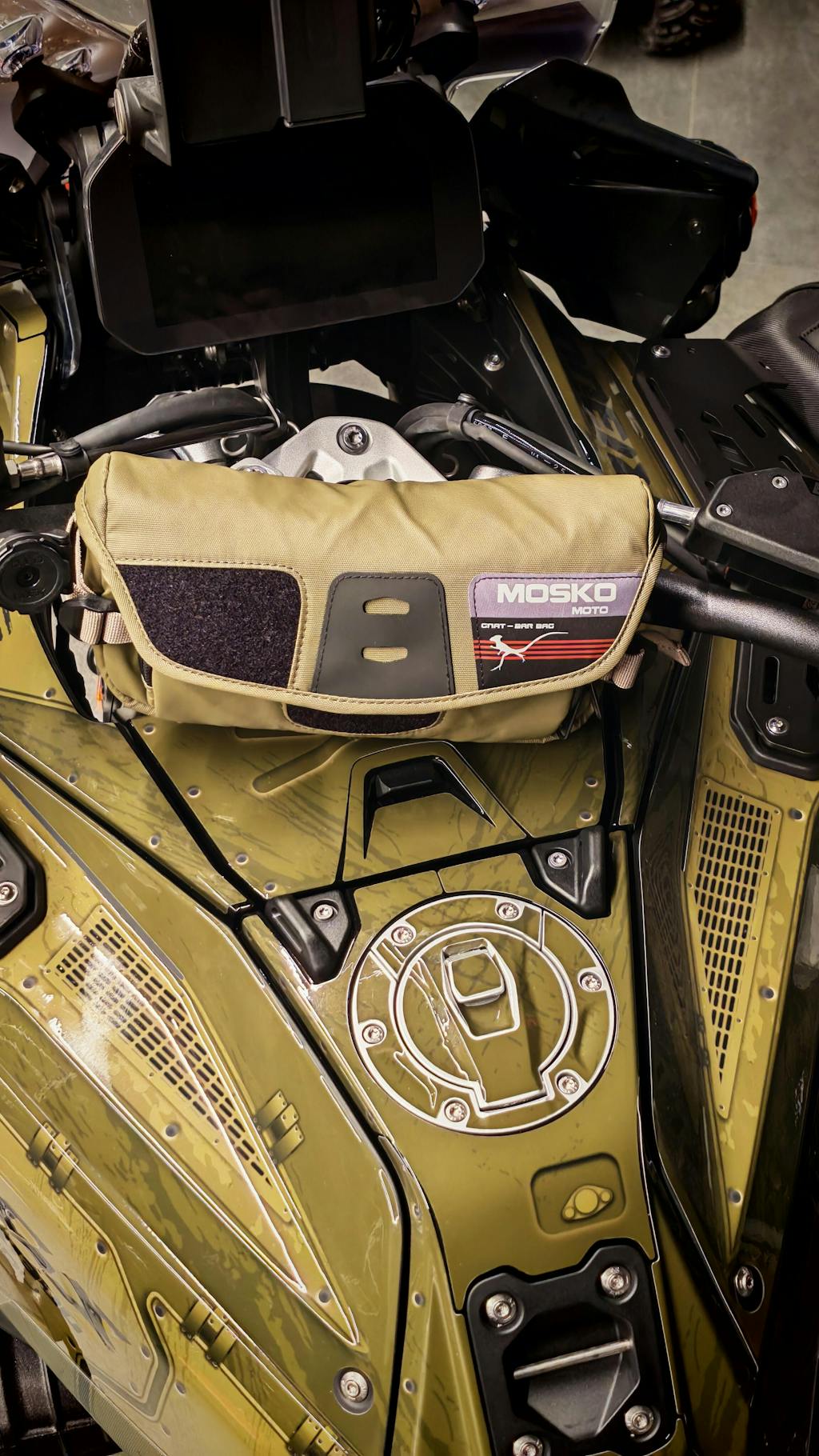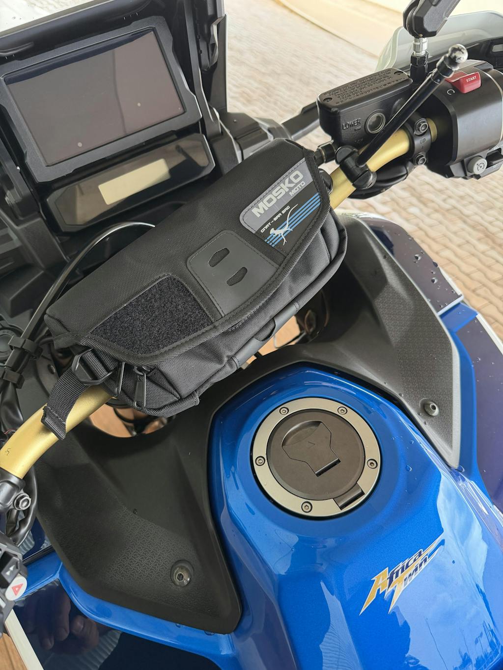 The Gnat Handlebar Bag easily mounts to most motorcycle handlebars using the included Voile straps and is designed to hold small, everyday carry items for fast access like your phone, wallet, sunglasses, ear plugs, charging cables, and trail snacks.