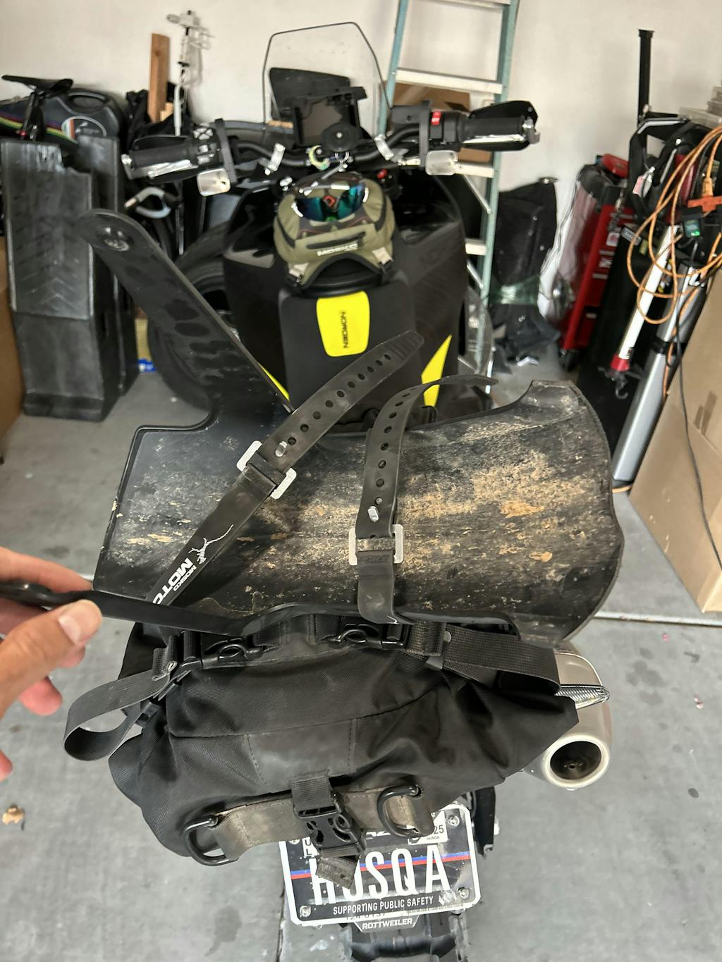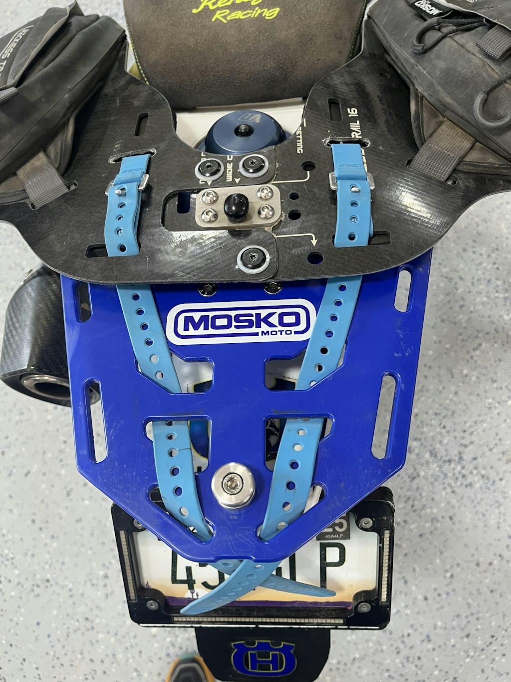 Used to quickly attach “essential day trip gear” to KTM 890 contained in 5 liter dry bags.