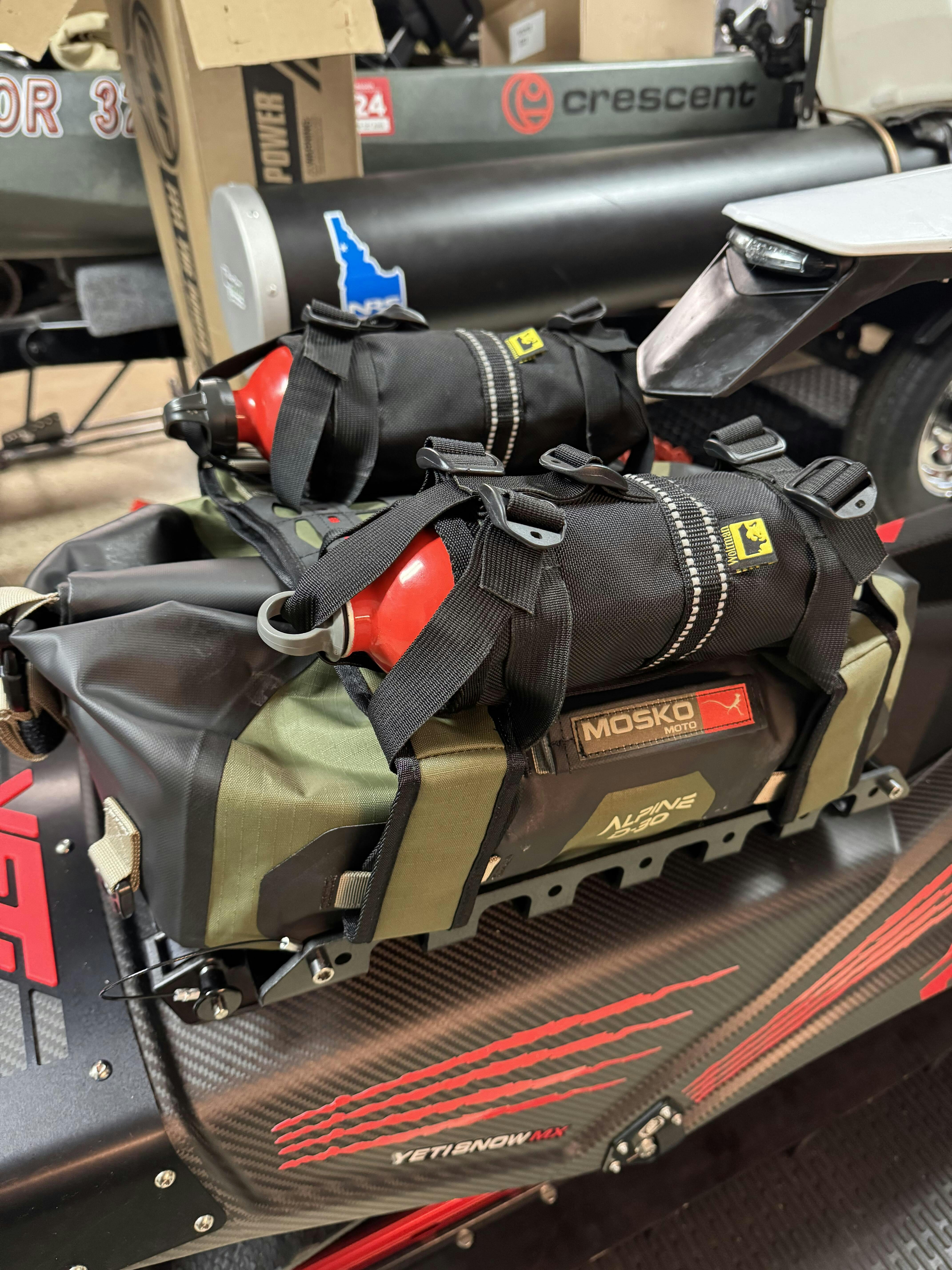 The new Alpine 30L Duffle is a lightweight, 100% waterproof roll-top dry bag. Universally mounting to any tail rack with our optional Alpine Cinch Straps, the Alpine 30L Duffle compliments rack-mounted panniers or rackless systems with an additional 30 liters of storage in a minimalist design package. Pair with our Alpine Pannier Kit for a lightweight, high capacity adventure touring setup designed to prioritize weight-saving performance in technical terrain.