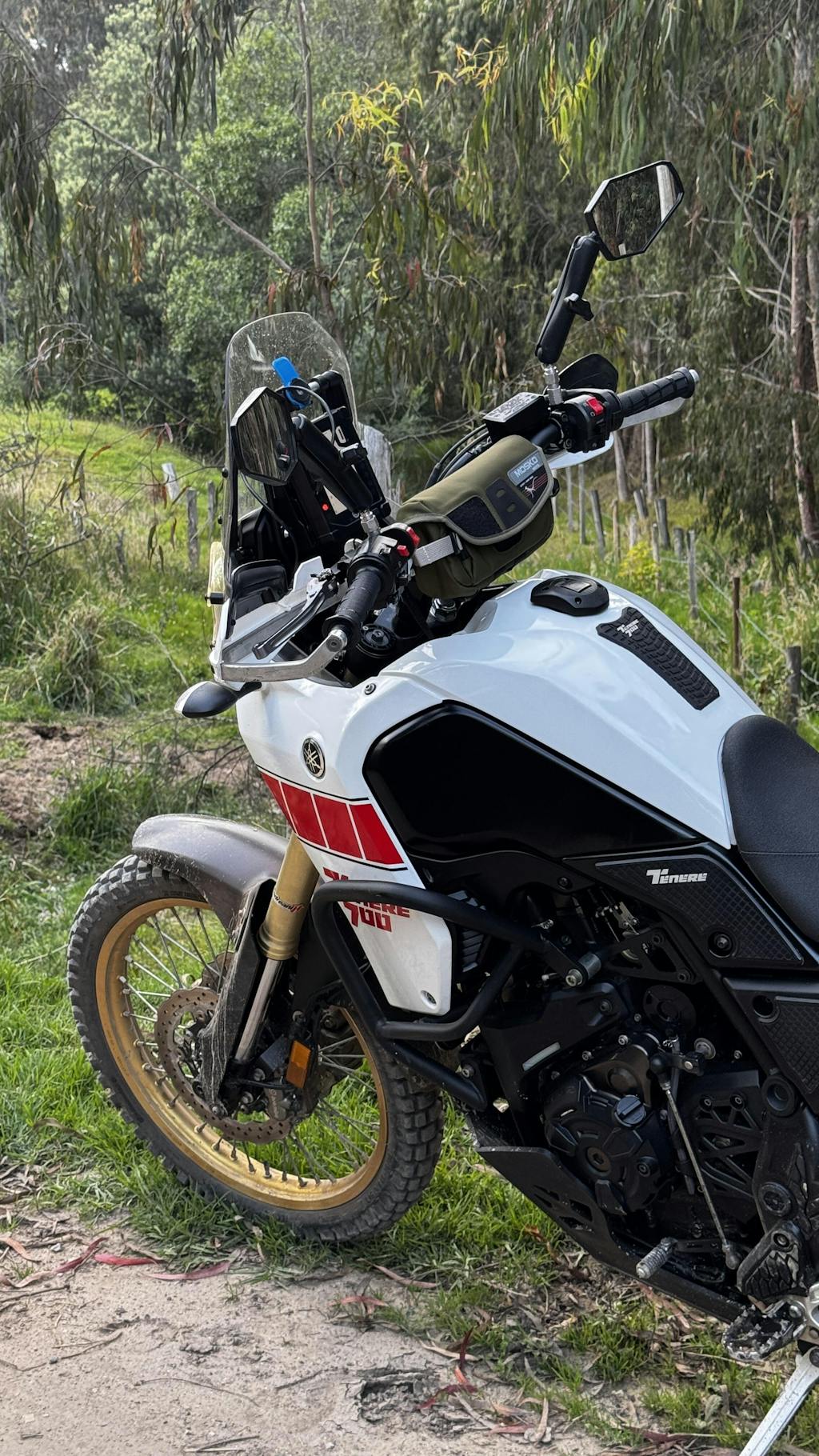 Works great on my T7 on hard adv rides. i have also used on a smaller bike, a Vogue Rally 300, which perhaps makes for a better fit. Very, very functional. I kinda wish it was waterproof.