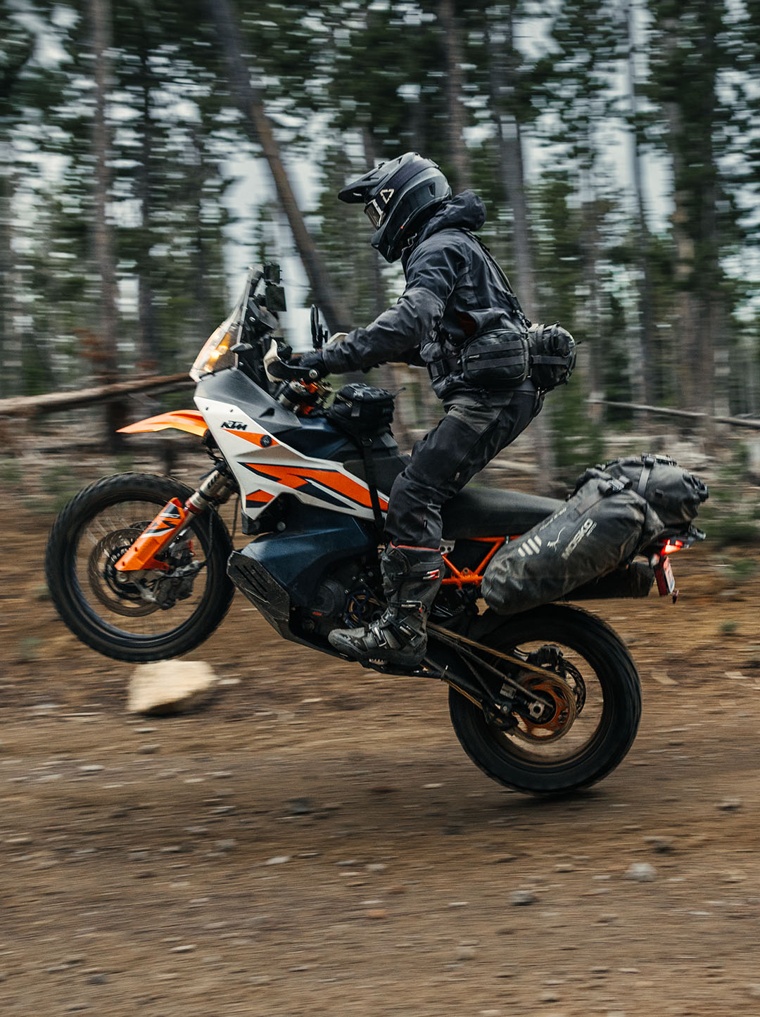 With the Gnome's unique mounting orientation in a landscape position on top of your tank, there is enough space to stand comfortably without restricting movement as you tackle steep mountain passes or miles of Baja whoops. Its 5L storage capacity includes a 1.5L Hydrapak hydration water reservoir within arm’s reach, so you can quench your thirst while riding.