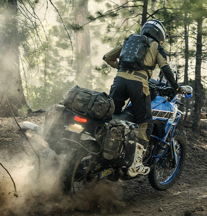 Rear-mounted duffles and tail bags are the original motorcycle luggage. Often combined with two side panniers for a traditional three-bag packing system, duffles also work well on their own, or rigged as pannier toppers on top of hard boxes. All Mosko duffles and tail bags have stowable backpack straps for off-bike use.