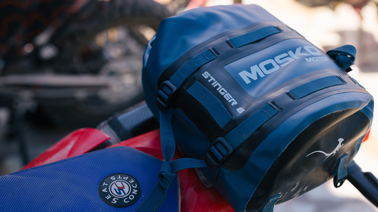 The Stinger 8 is an incredibly versatile roll-top drybag designed to mount as a tail/fender bag on smaller bikes, for carrying tools, tubes and other essentials, or as a topper on hard-side panniers or top boxes. It also turns into a backpack, in case you need a daypack for hiking into a hot spring, or making a quick trip to the store for supplies. The backpack straps stash away in an internal pocket, and then deploy through the opening of the bag, clipping to two d-rings on the bottom.