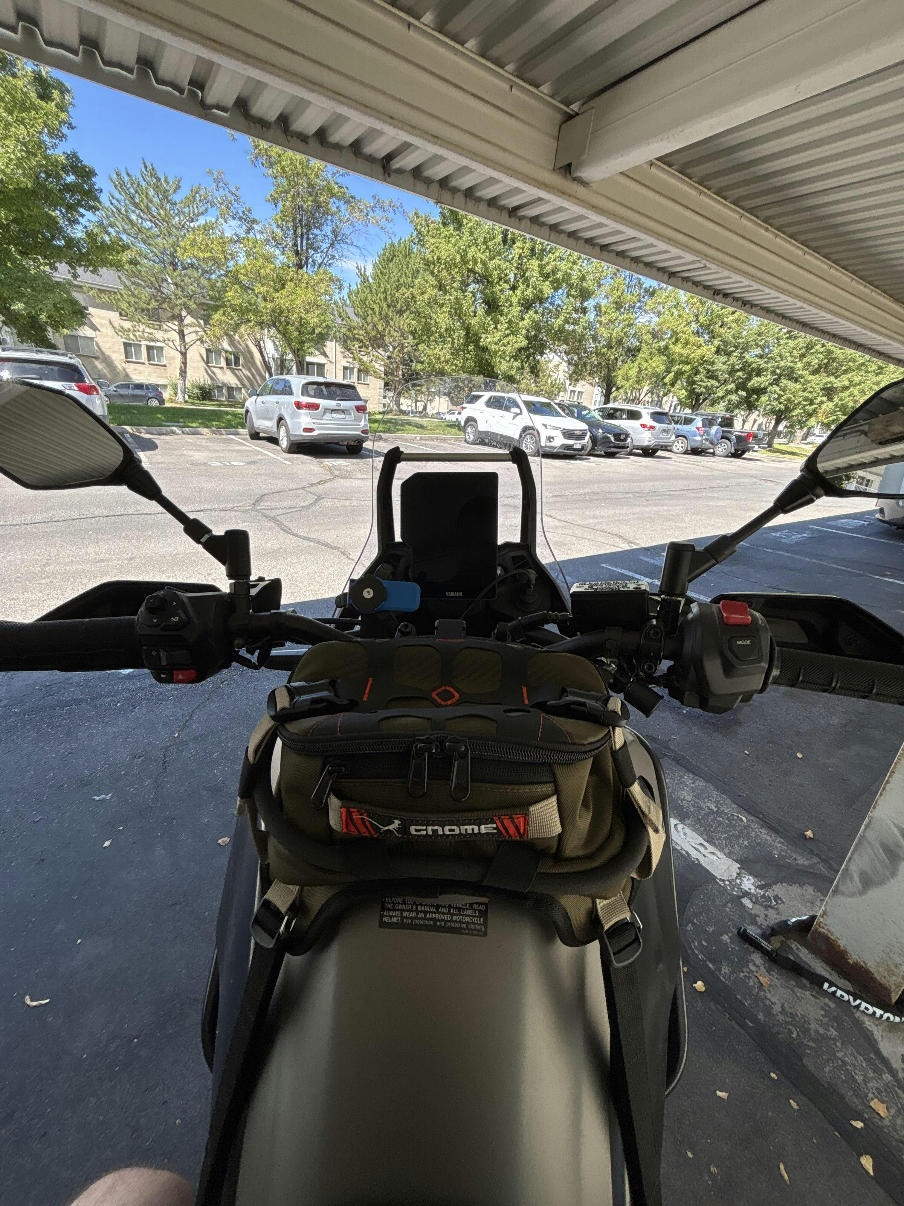 With the Gnome's unique mounting orientation in a landscape position on top of your tank, there is enough space to stand comfortably without restricting movement as you tackle steep mountain passes or miles of Baja whoops. Its 5L storage capacity includes a 1.5L Hydrapak hydration water reservoir within arm’s reach, so you can quench your thirst while riding.