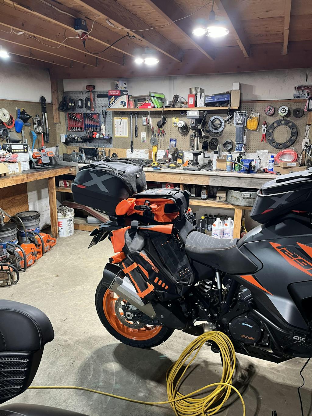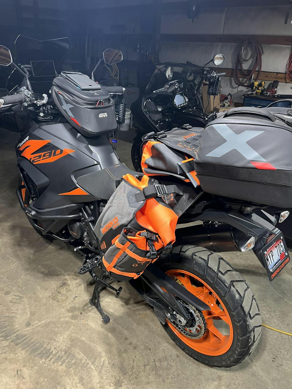The R80 is our large capacity rackless luggage system designed for off-road riding/camping, Backcountry Discovery Route exploration, and international fly-to-ride trips. The Reckless 80L is 100% waterproof, expands and contracts for various load volumes and riding conditions, and features adjustable leg angles to fit enduros up to larger ADV bikes.