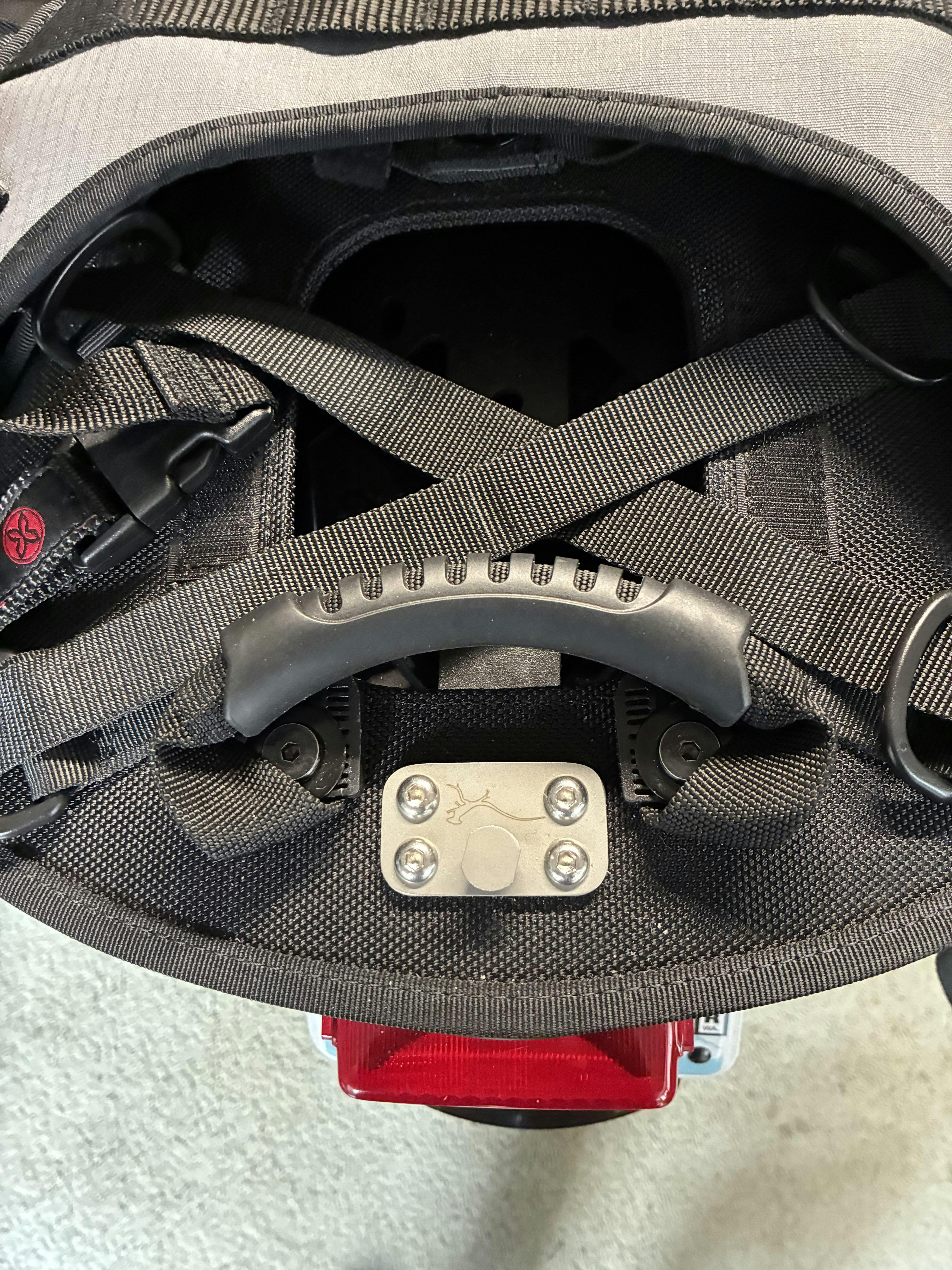 The Gnoblin is the answer for fast and easy on/off mounting of our Reckless luggage systems on ADV, dual-sport, and Enduro bikes. It replaces the multiple rear mounting straps on the bag harness and adds a single anchor point, increasing bag stability in rough terrain.